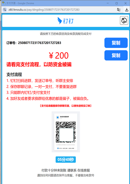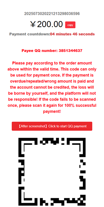 - After verification, provide the order number information, the payee provides the corresponding payment method, and the member can pay as required