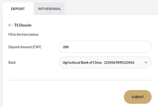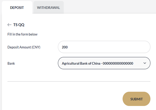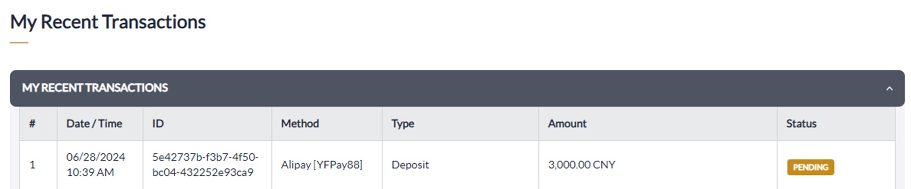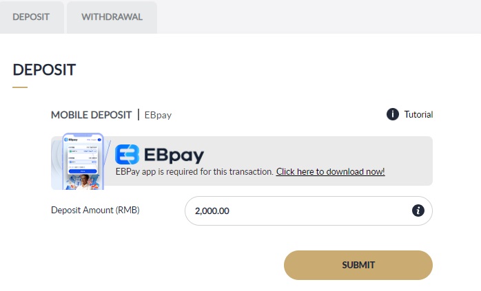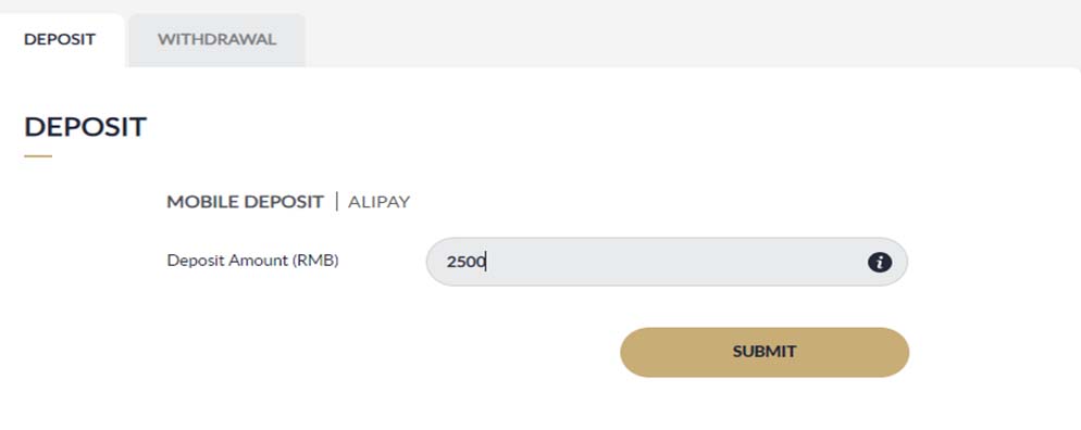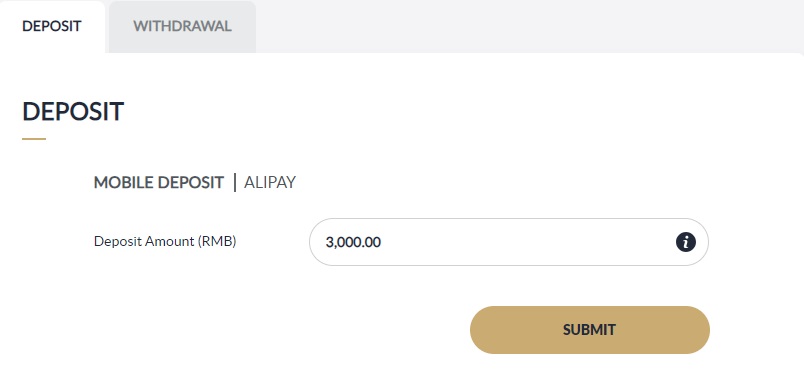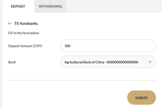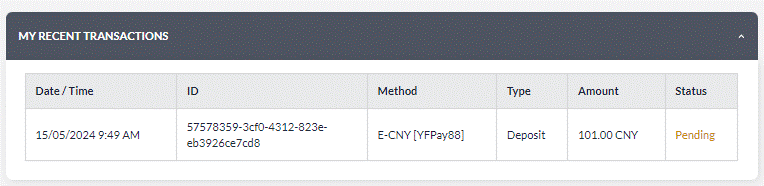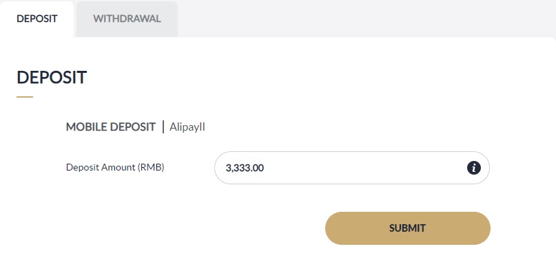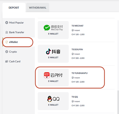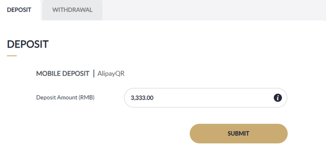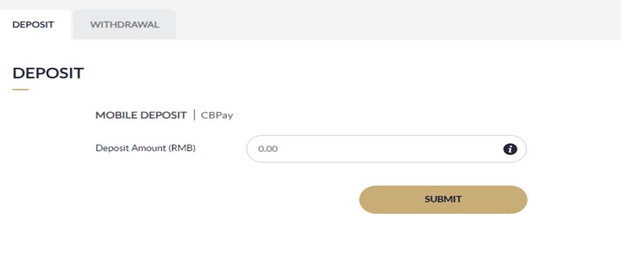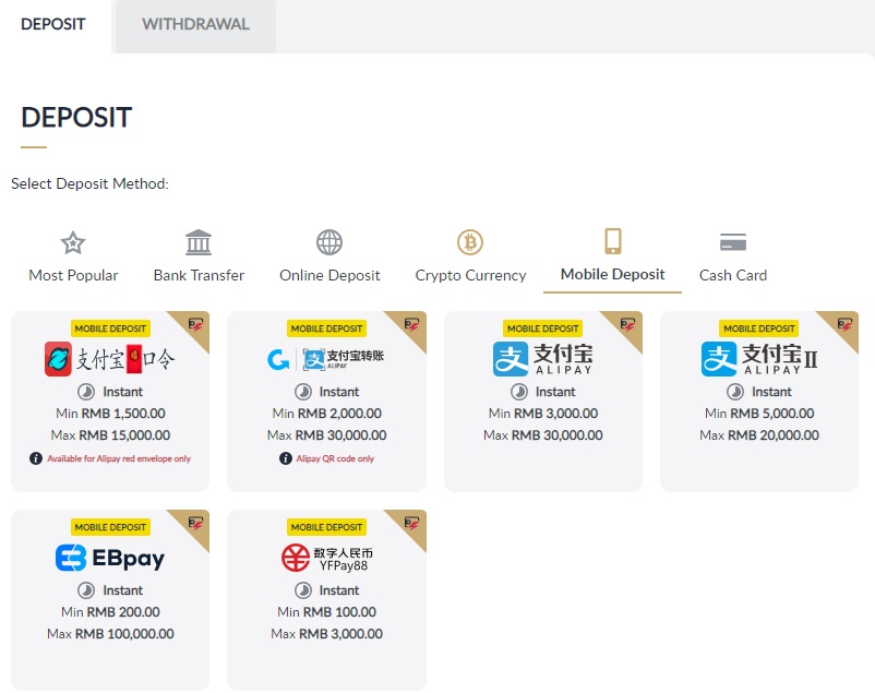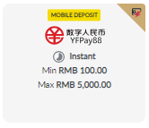 - Select deposit method "Mobile Deposit" and choose "YFPay88"
