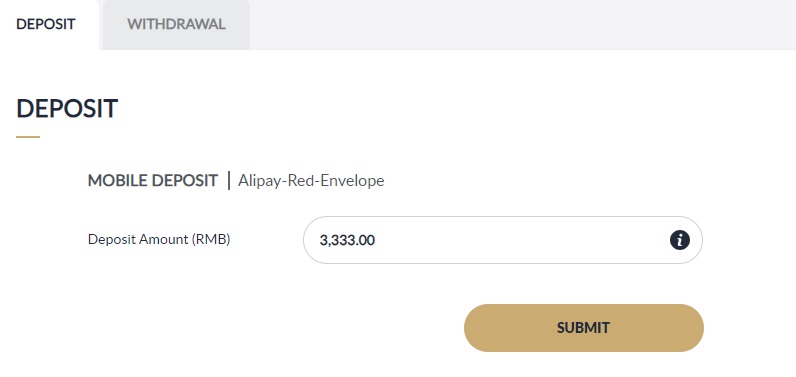 - Click ALIPAY RED ENVELOPE on Mobile Deposit