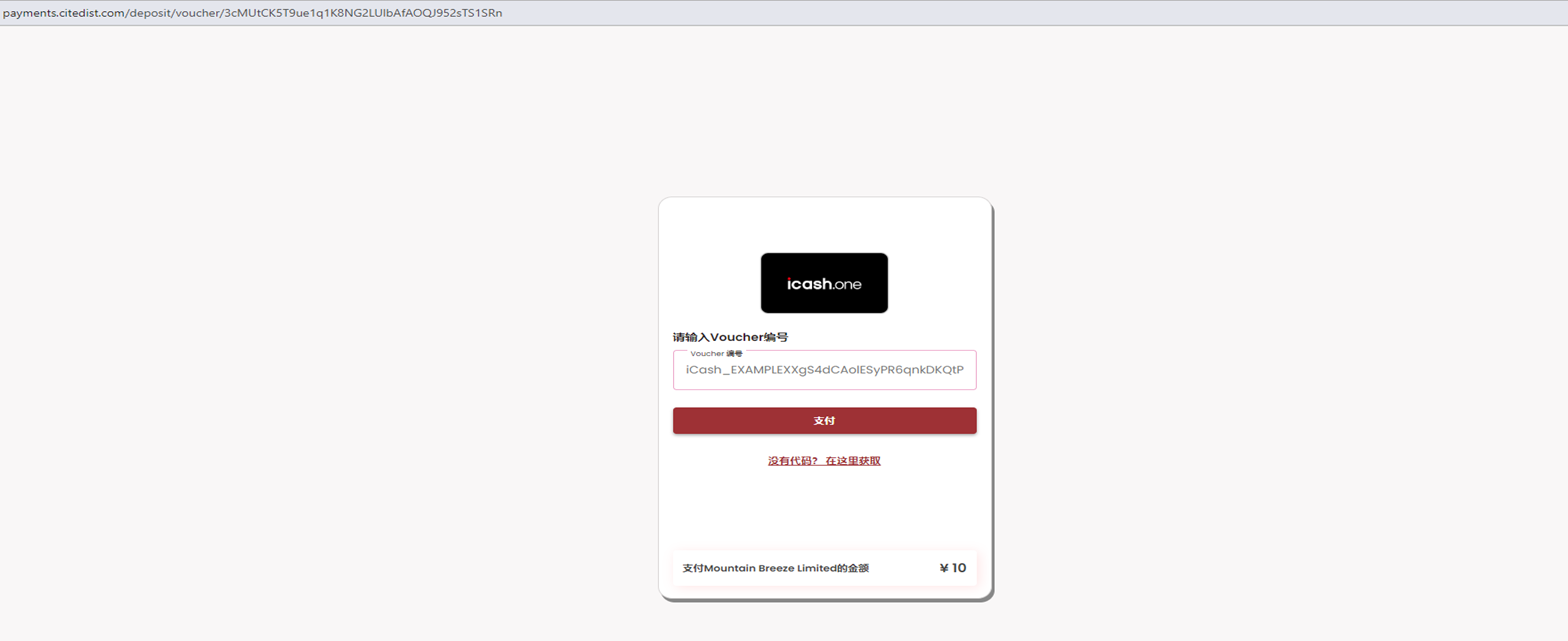- Follow on-screen instructions, insert the Voucher number and click 【支付】.