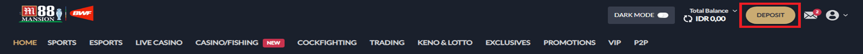 - Choose "M88 BANK" → Choose "YOUR BANK" → Input the deposit amount → Click "NEXT".