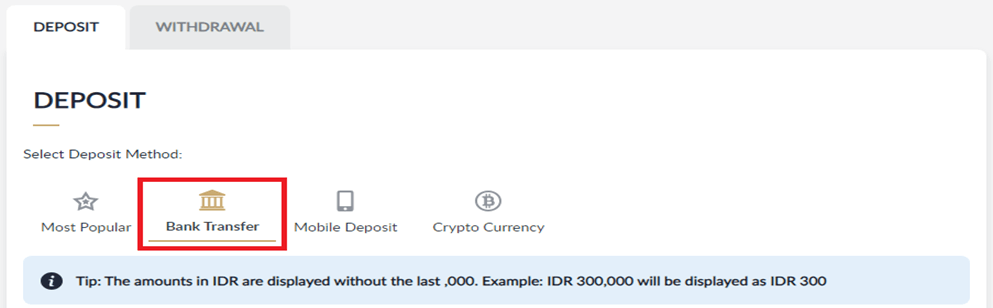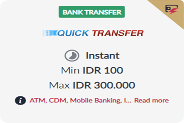 - Click "DEPOSIT" tab → Click "BANK TRANSFER" → Click "QUICK TRANSFER".