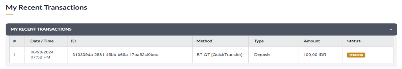 - Find your latest deposit record in "MY RECENT TRANSACTIONS".