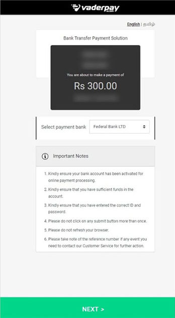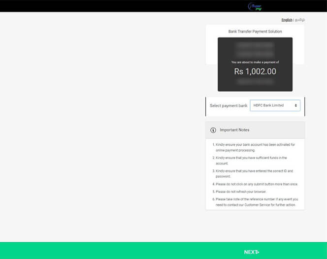 Select the payment bank and click NEXT