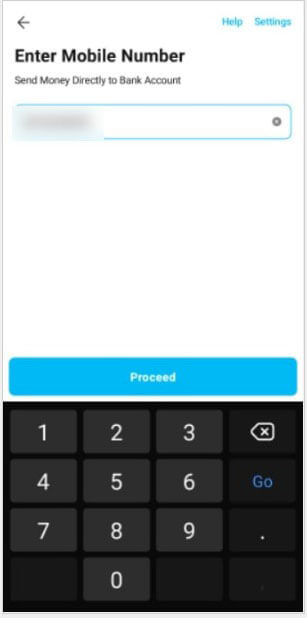 Input the phone number (Wallet number from step 3) that you will transfer to, and click Proceed