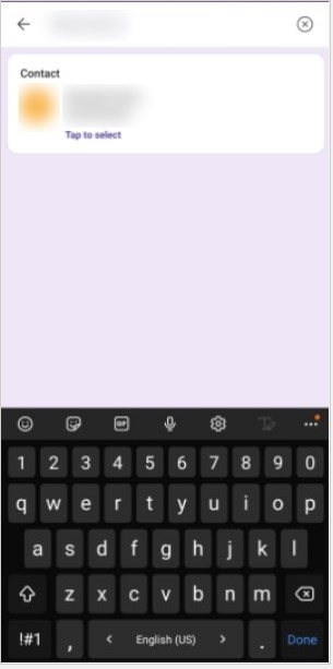 Enter a mobile number that is shown in step 3 and tap the name to select the Contact
