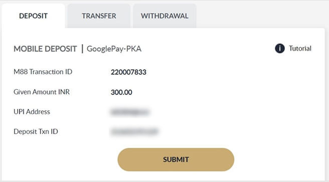 Note : UPI UTR is the Transaction ID for submitting deposit later