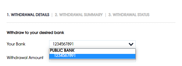 3. Select your preferred beneficiary bank account number >> input desired withdrawal amount >> click SUBMIT