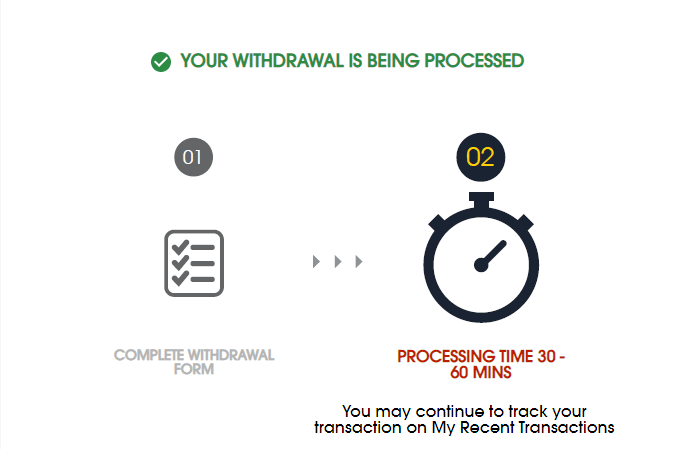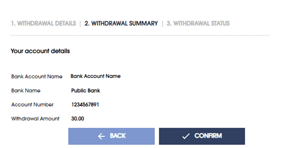 4. Click CONFIRM to confirm your withdrawal, click BACK to edit