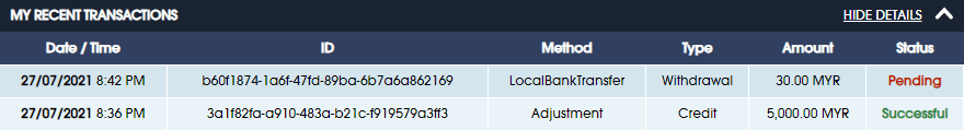 6. You can track your transaction at MY RECENT TRANSACTIONS